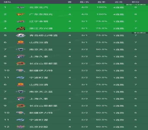 CBA最新排名:京粤4连胜争第1辽宁领衔4队紧随3队一胜难求